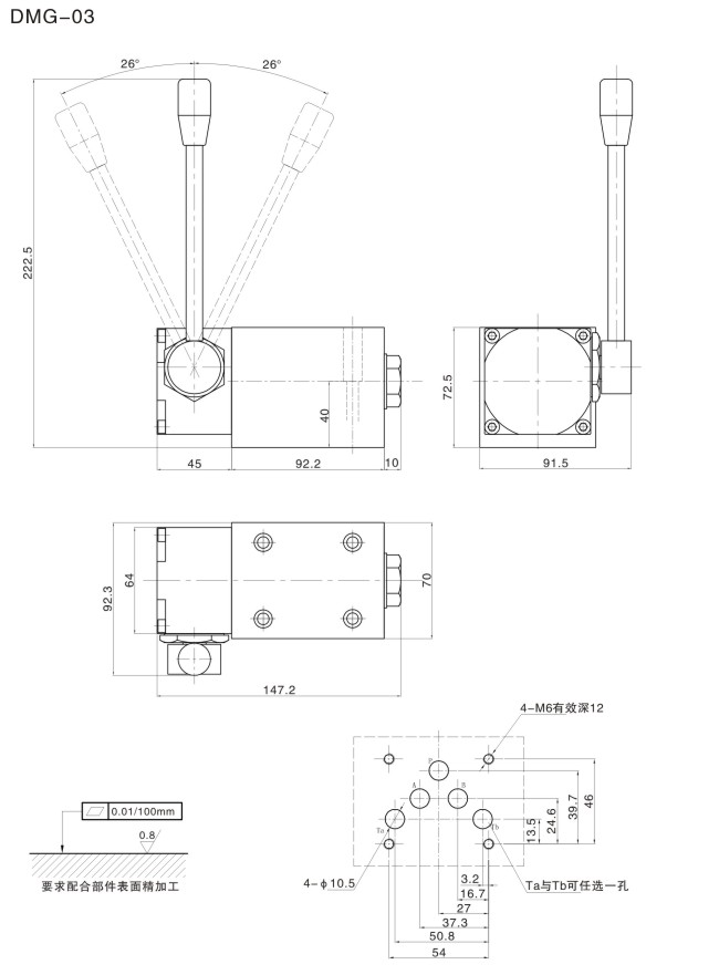 用手操作手動桿,使回路中油液的流向得以控制,達到方向控制之目的。