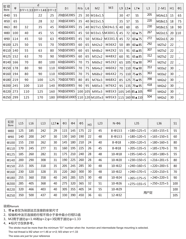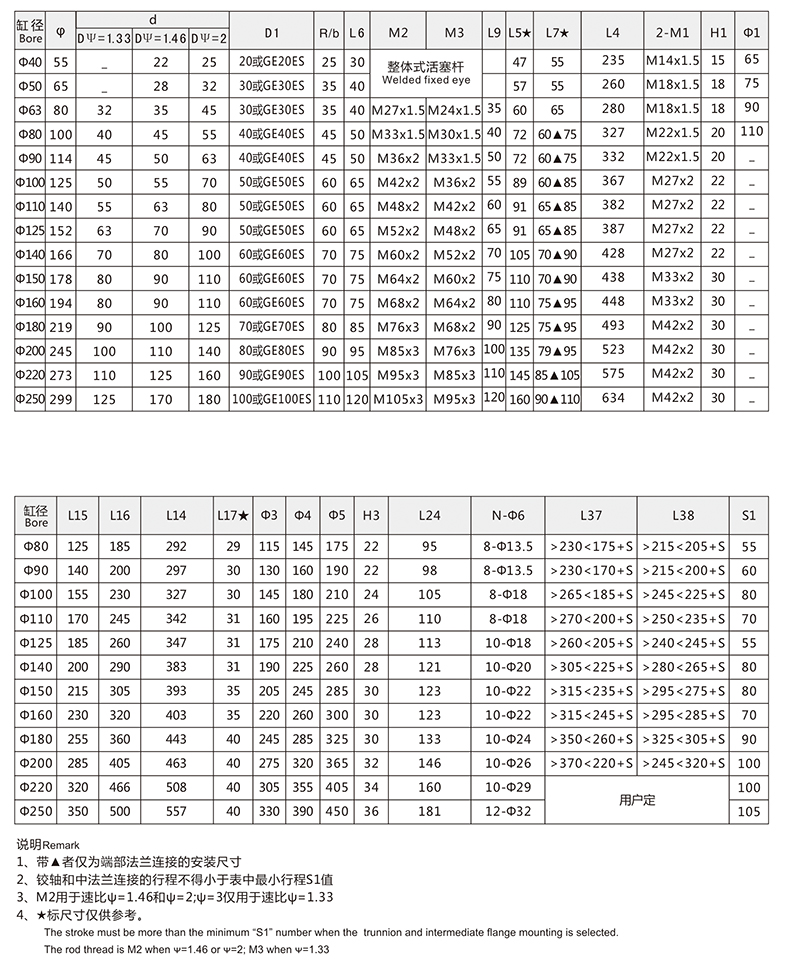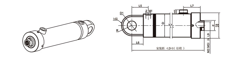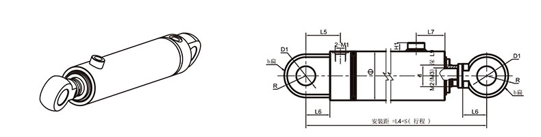 活塞桿端為內螺紋桿頭耳環連接