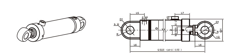 活塞桿端為外螺紋桿頭耳環連接