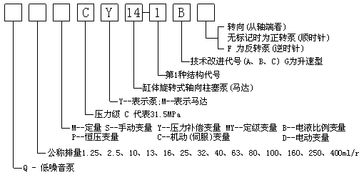 CY14-1B系列泵是采用缸體旋轉,靠變量頭(斜盤)變量的軸向柱塞泵。由于滑靴和變量頭之間、配油盤和缸體之間采用了液壓靜力平衡的最佳油膜厚度設計,使上述兩對運動面之間處在純液體磨擦下運轉,并省去了重型推力軸承,因而與其它類型的泵相比,具有結構簡單、體積小、效率高、重量輕、噪音低、壽命長、自吸能力強等優點,它適用于鍛壓機械、機床、船舶、航空、冶金機械、塑料機械、工程機械和礦山機械等液壓設備。